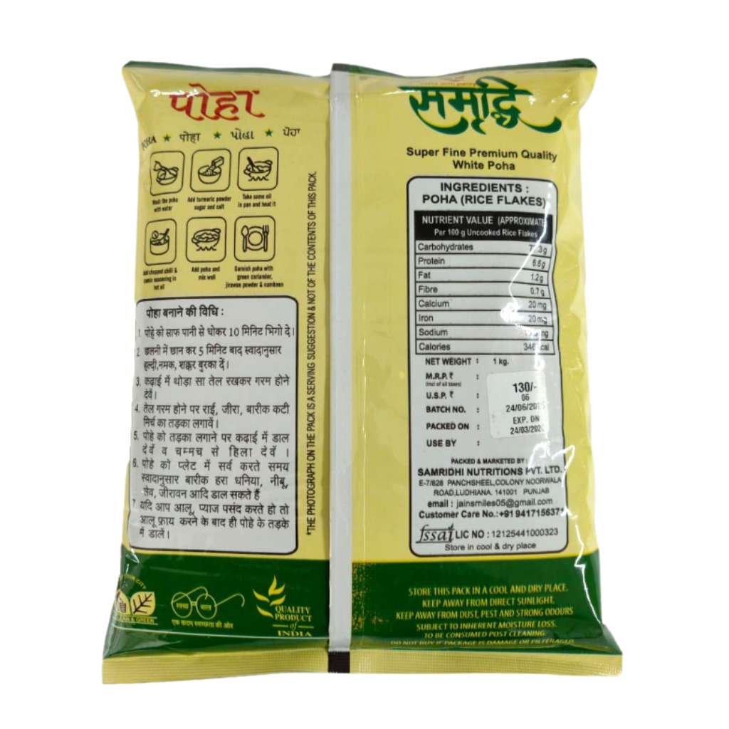 Poha is used to make a variety of dishes, most famously the quick and savory breakfast or snack dish also called “Poha” (sautéed with spices, onions, and peanuts). It is also used in snacks like chivda and other preparations like upma and dosa.
